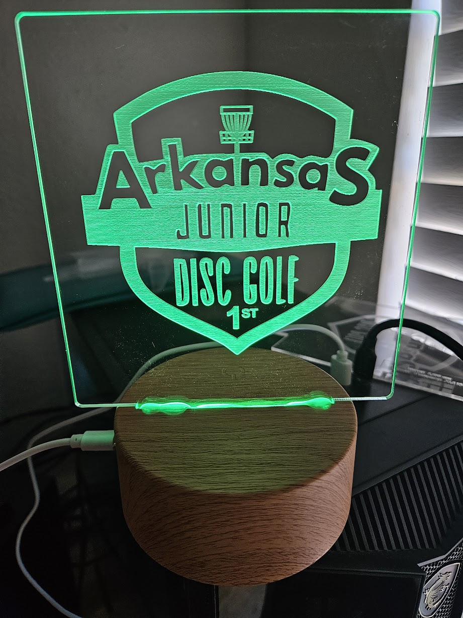 Night-Light Trophies with Clear Acrlyic in Wood or Black Base. Lights up Different Colors.